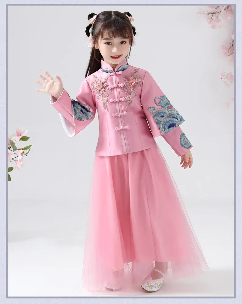 Traditional Chinese Cheongsam Style Embroidered Kids Girls Dress Wear Baju Cheongsam Kanak Perempuan Tradisional Cina Lazada